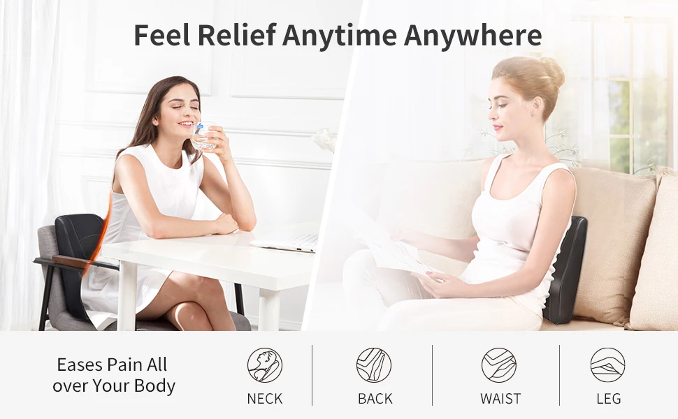 【Neck and Back Massager】Larger size: 15*13 inches, 6 inches longer than ordinary massage pillows. Perfectly fits the neck and back curves to provide most comfortable massage experience. 2 heating positions with 2 heating levels. 3 adjustable intensities, all controlled by a convenient remote.