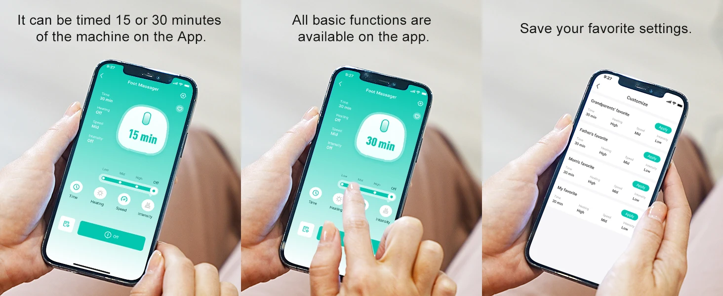 Introducing the Fully Wrapped Foot Massager Machine, a foot massager that can be controlled through both a control panel and smartphone! With Medcursor APP, you can easily adjust the heat, air pressure, massage function, and timer according to your needs. The massager features 360° air compression for entire coverage and three integrated massage modes, making it an effective tool to encourage blood circulation and reduce foot soreness. Its heating feature stimulates blood circulation and relieves foot pain, and its washable foot compartment cover ensures a hygienic and clean experience.