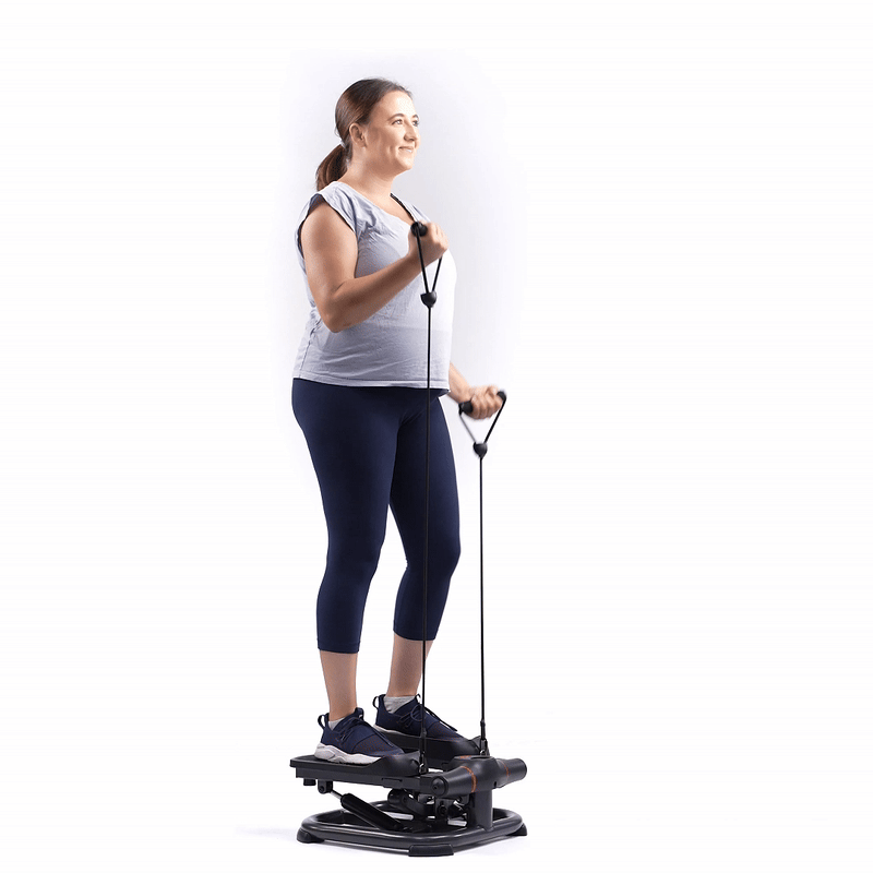 Adjust Intensity: You can control workout intensity by increasing your stepping speed or adjusting resistance band movements.